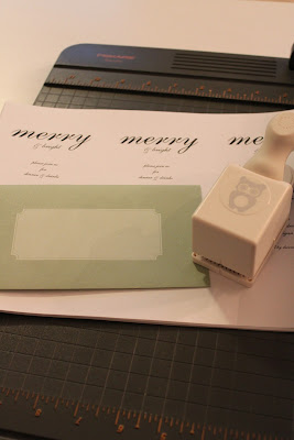 Time to get started. I have had my Fiskars cutting board forever. It's one of my best purchases. Here is a photo of the owl punch. I picked mine up at Michaels. The envelopes I used are from Office Max - they are by Divoga and are 6.75" x 3.75". I printed out my invite on card stock using my 1997 version of American greetings CreataCardGold. It's simple and it works. I printed 3 to a sheet.