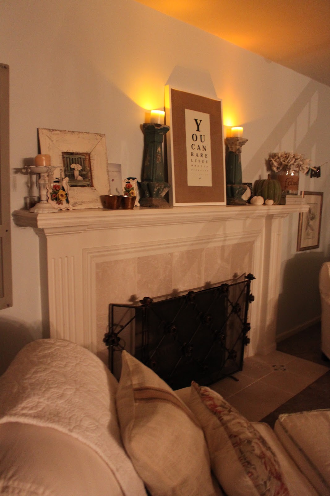 The flower plaques were on the right side of the mantle. They were my Grandma's and when I was in grade school she gave them to me for my room. I love them to this day and they are always on display. The colors are very Fall so here they stay!