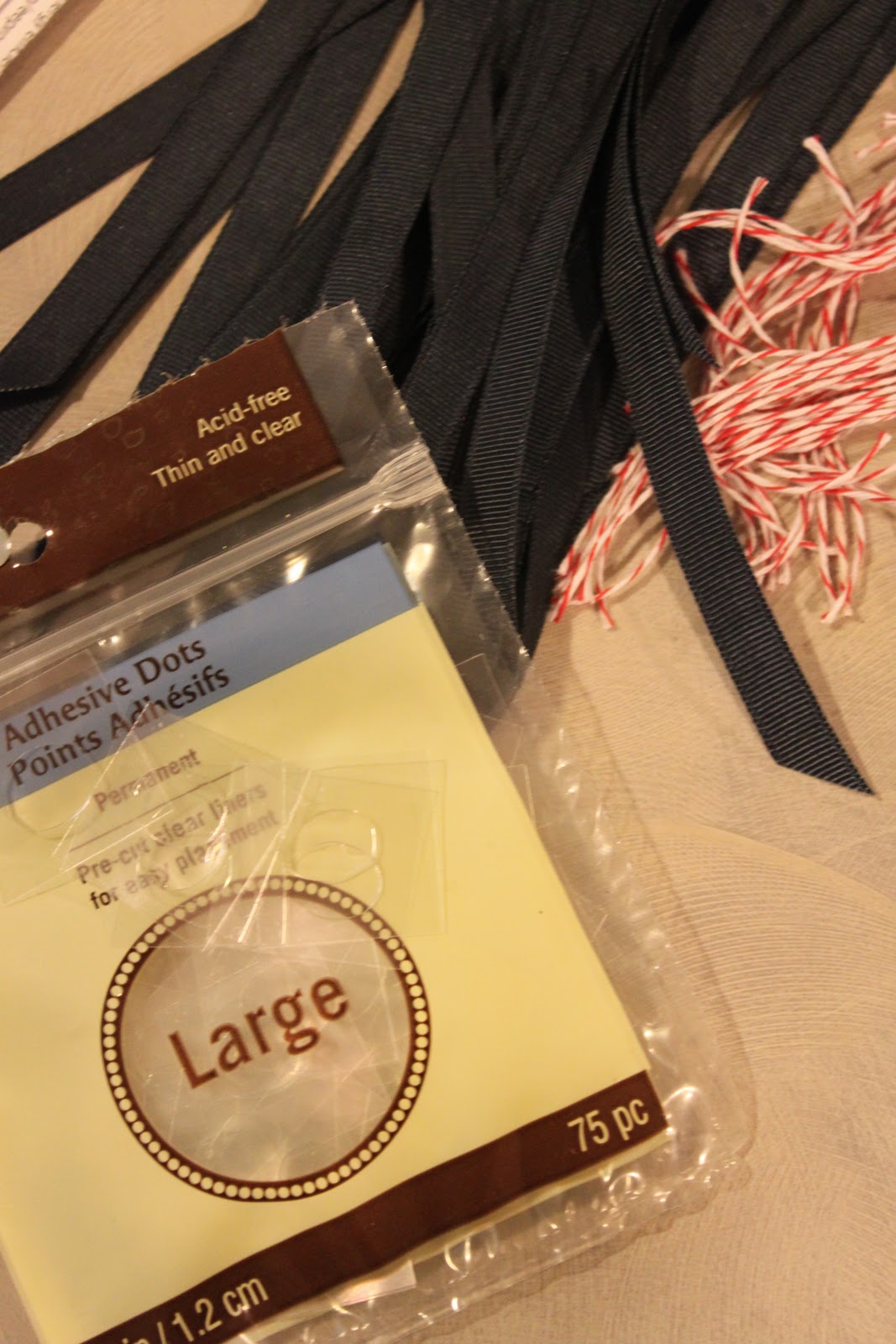 Next, I placed a large adhesive dot on top of the ribbon.